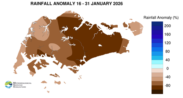 8 Singapore recorded well below average rainfall in the second fortnight of January 2026. Changi registered rainfall of about 99 per cent below average.